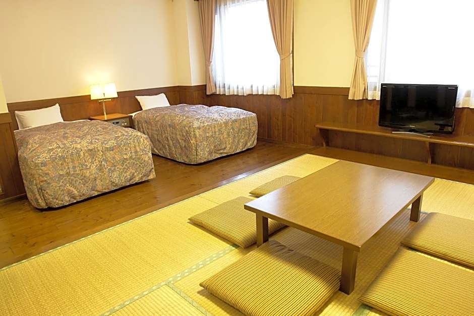 The triple room features air conditioning, tatami, as well as a private bathroom boasting a bath and a bidet. The triple room offers a flat-screen TV, a safe deposit box, an electric kettle and heating. The unit has 2 beds and 1 futon.